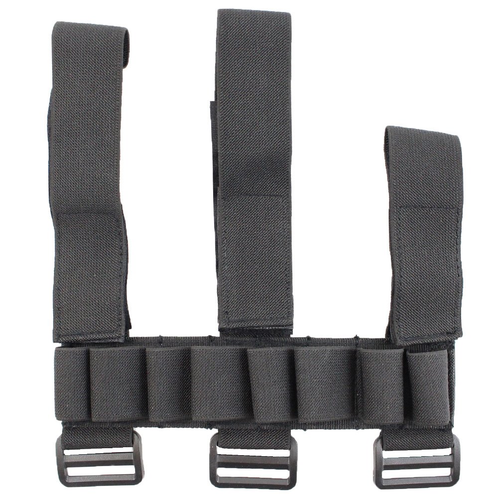 This Shotgun Shell Strap provides a secure carry for your extra ammo. Eight elastic loops house extra shells along the 210 mm (8.5 inch) strap. The nylon material is durable and hard to rip in tactical situations.