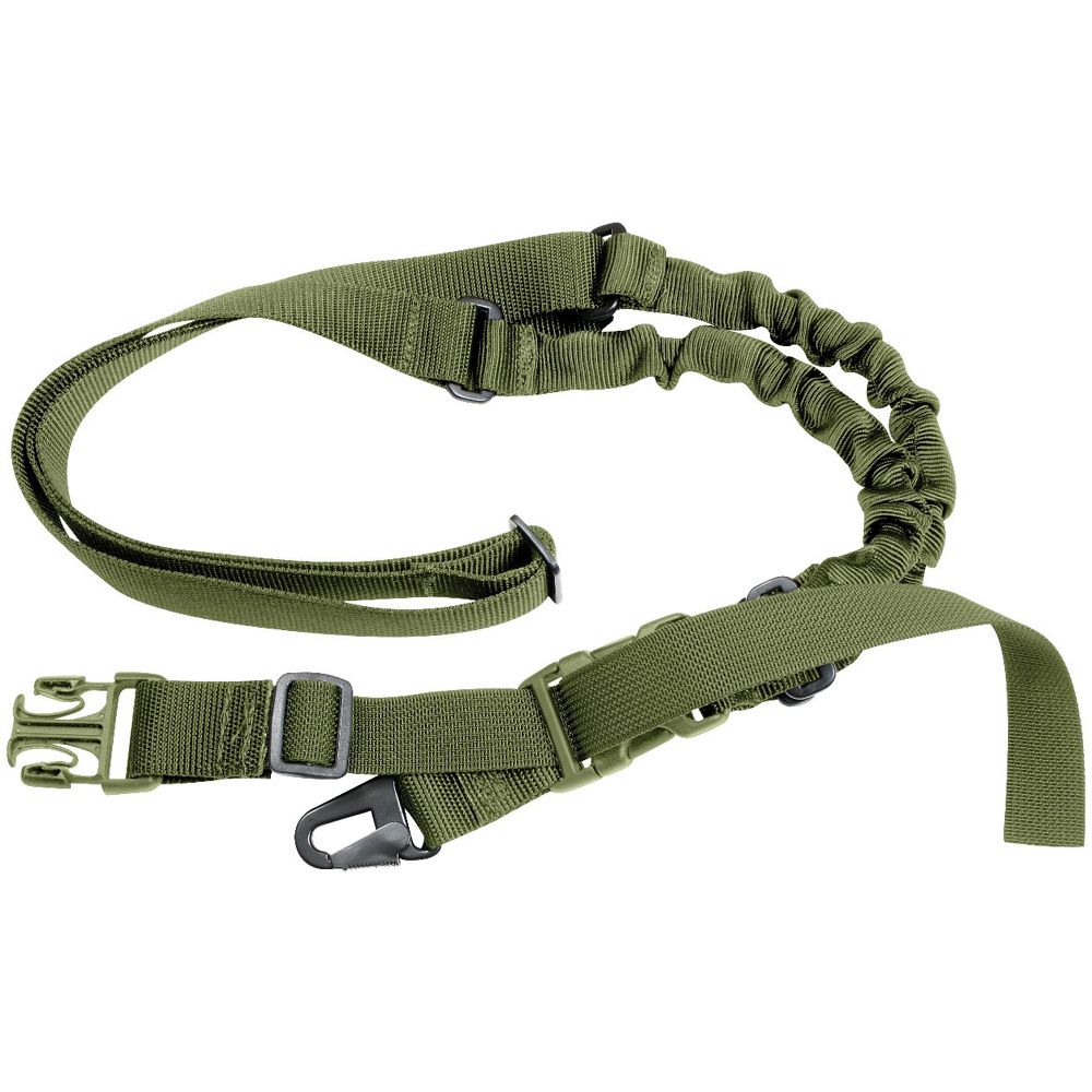 Single Point Sling in color is made of high strength, heavy duty nylon straps. These slings are tested to withstand a force of 250 lbs and are ideal to be used during combats. The Single Point Slings feature highest quality buckles that are durable and during combat can be detached with ease. Other features offered in this sling include the 1.25” wide webbing, smooth sling and adapter release capability with the side release buckle, elastic covered HK snap hook adapter, dual bungee construction and Duraflex buckles. This product offers superior weight distribution through the military grade bungee cord and features high density polymer hardware.