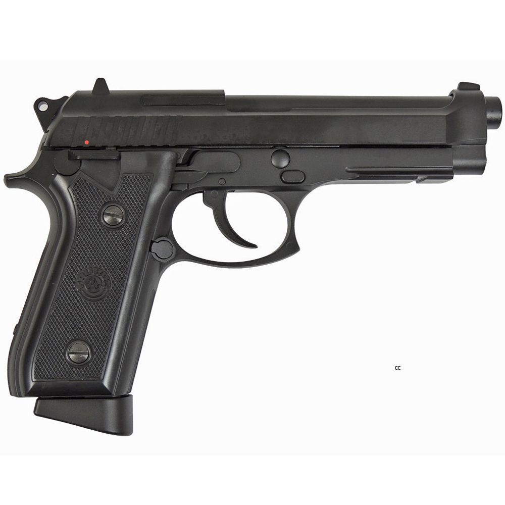Features:Type: airsoftPower: CO2 Material: full metal Overall Length: 217 mm (8.5 in)Weight: 1140 g (2.5 lb) Action: semi-automatic/full-automaticTrigger: single and double actionBarrel Length: 94 mm (3.7 in)Blowback: yesMagazine Capacity: 27 roundsAmmo Type: airsoft BBs 6mmMuzzle Velocity: 380 FPS