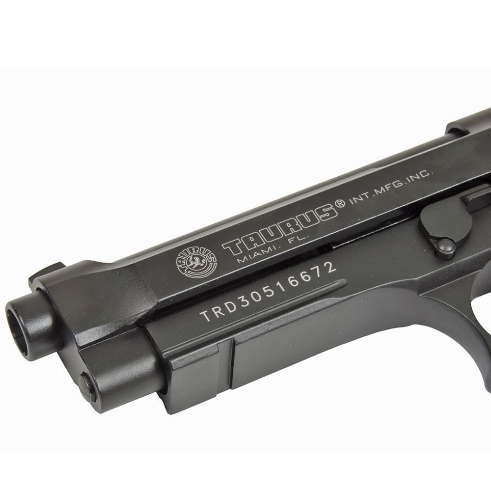 This officially licensed Taurus airsoft pistol features a full metal construction, open barrel design, and authentic Taurus trademarks on the slide and grips. A CO2 powered blowback system provides realistic kickback and cycling of the slide with every shot. The magazine holds 27-rounds, which can be fire one at a time or all at once with the PT99's exclusive full-auto firing mode. The gas powered system provides a reliable muzzle velocity in all weather conditions. An integrated weaver tactical rail allows for light and laser attachments.