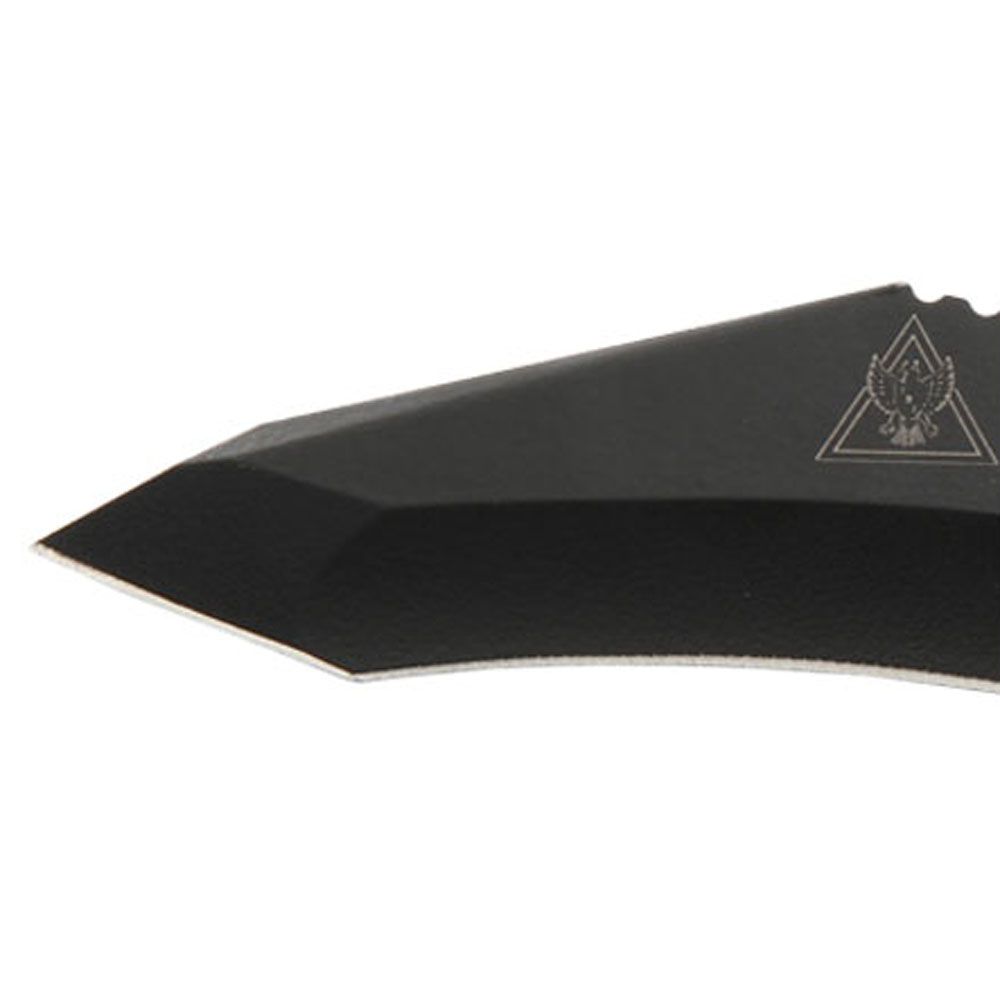 The Hell Fire features a recurve Tanto blade. Locking Hard Plastic Sheath and reversible black metal belt clip (1480CLIP) included.  Fits maximum height of 1.75", width of 1.25" and thickness of 0.25".