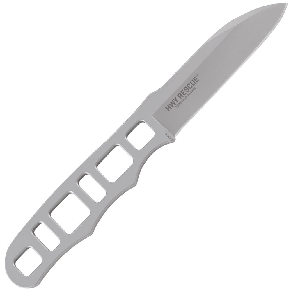 Designed as a utility knife for emergency professionals, this is an at-the-ready fixed blade equipped with life-saving extras. Mow through belt straps, break glass, open oxygen tank valves, save lives.Bob Terzoula of Albuquerque, New Mexico is widely regarded as the father of tactical folding knives. When local highway patrol members asked him to design a tool they could attach to their body armor and always have at the ready, he was happy to oblige. Thus, the Terzoula HWY Rescue knife was born. The skeletonized handle and the stainless steel blade feature a bead blast finish and are strong and lightweight. The handle incorporates an 02 wrench for taking on those valves when time gets tight and you need to release the oxygen. The sheath features a passenger side window glass-breaker for making an impact when time is running out. The durable glass-reinforced nylon sheath is also equipped with an industrial strength VELCRO back and a seat belt strap cutter with two replacement blades. Attach the Terzoula HWY Rescue knife to the front of your kit and get more than a backup blade—get the peace of mind that you’re ready for whatever an emergency situation can serve up.
