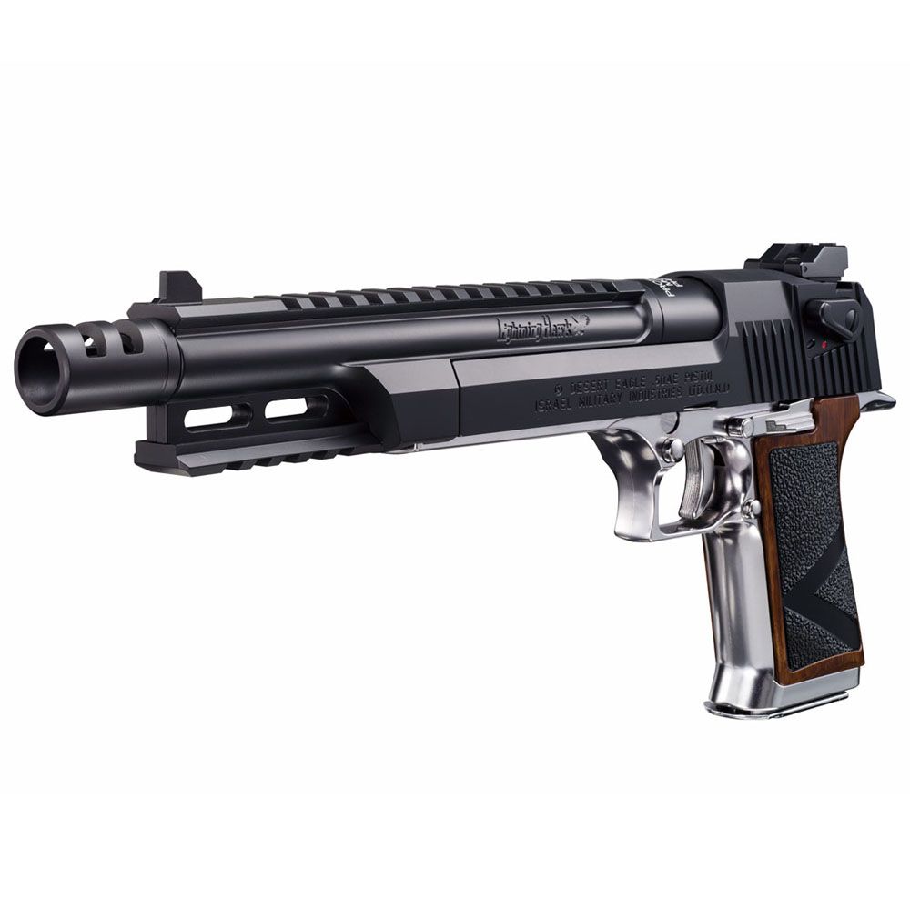 The latest Resident Evil collector piece from Tokyo Marui! The Lightning Hawk is a hybrid setup with a choice of using the standard 6-inch or the cannon-like 10-inch slide assembly. Using the new Mp engine, it kicks all the way up to your shoulder! It comes in a custom wooden crate with cutout internals to hold all your precious pieces safely together while looking stunning.