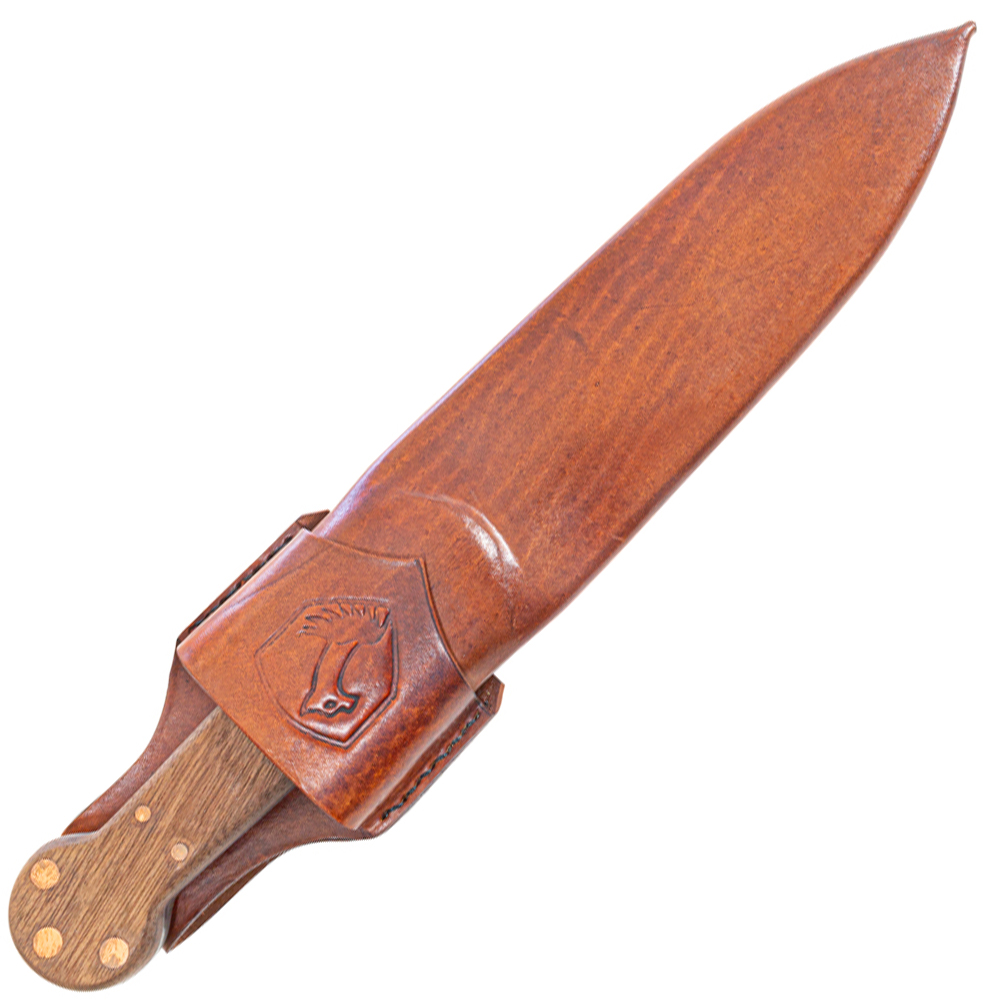 The natural finish enhances the blade’s rugged appearance, while the flat grind with a second bevel provides a fine balance between cutting precision and strength. Its walnut handle offers both comfort and control, ensuring a secure grip even during extended use. Paired with a hand-crafted welted leather sheath, this knife is not just a tool but a dependable companion for your outdoor ventures.