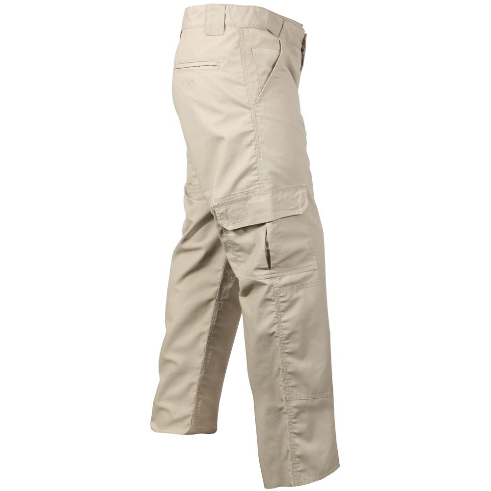 Tactical Duty Pants are made of 65% polyester and 35% cotton. The tactical pants have new stain resistant finish. The pants are provided with range of pockets which makes it stylish and functional. There is a cell phone pocket on the left side with hook and loop closure. The two rear pockets and pleated side pockets are provided with hook and loop closure. The rear pockets have inset slit pockets. The belt loops are 1 ½ inch wide which is perfect for normal to large belts. The Pants is stitched with new and comfortable waist band which gives proper grip to your waist. It has both zipper fly closure and snap closure waist. The reinforced seat and knee is an additional feature. With so many features, the tactical pants are no doubt the best.