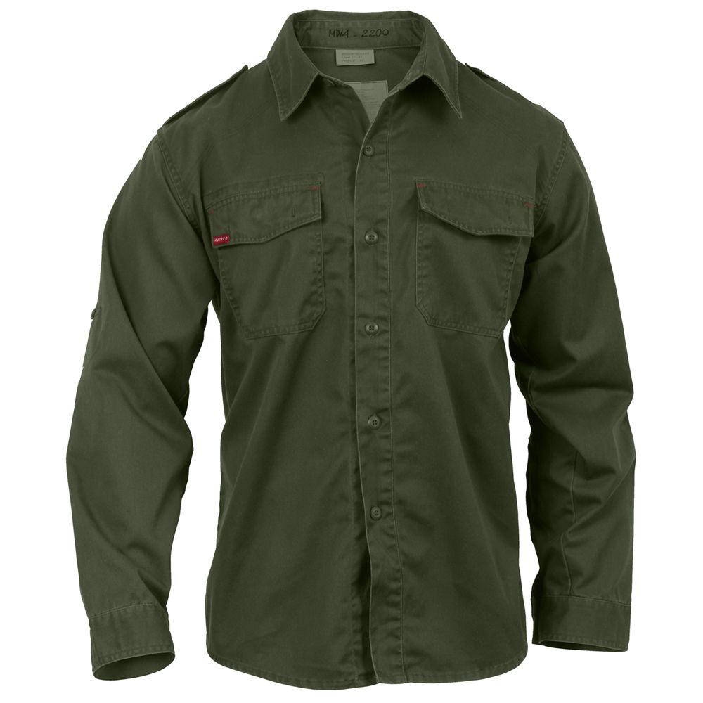 Material Is 55% Cotton And 45% Poly, Washed Long Sleeve BDU Shirt, 2 Front Pockets With Concealed Button, Epaulets, Inside Sleeve Strap Buttons To Allow Long Sleeve To Become Short Sleeve