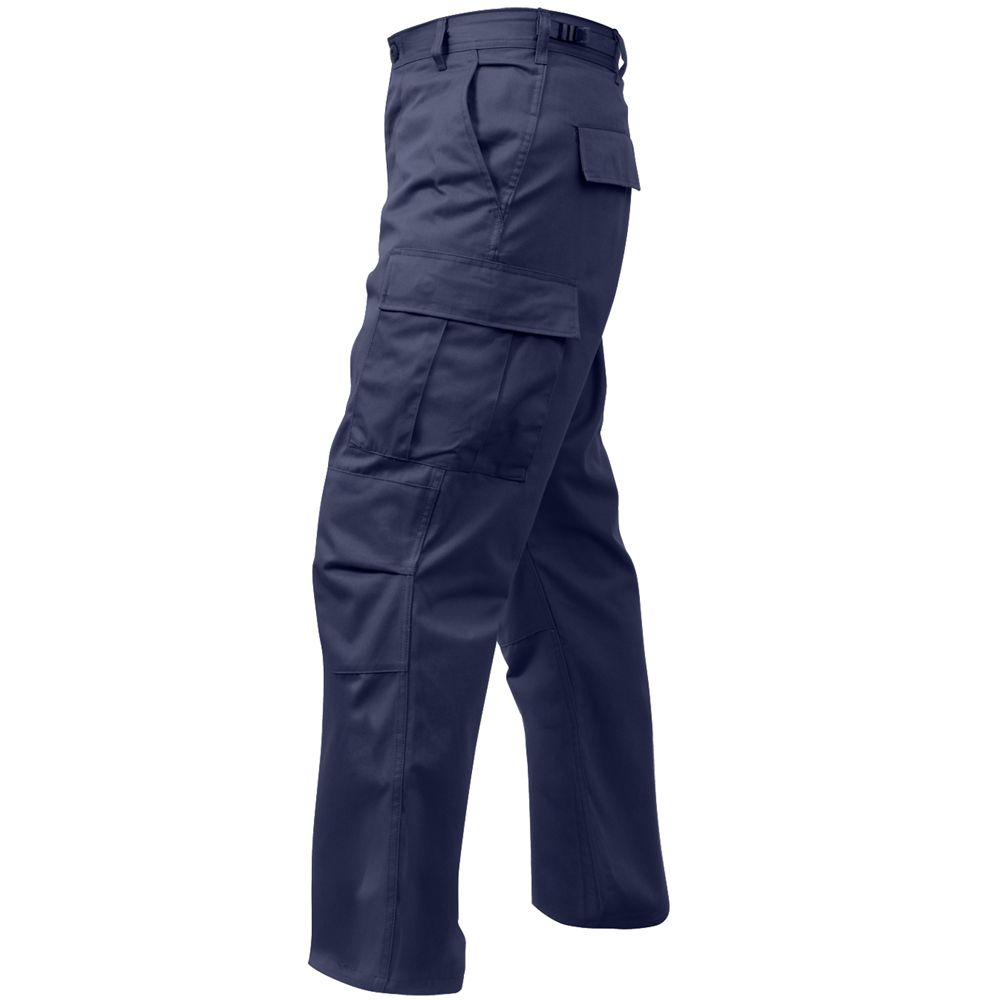 Relaxed Fit Zipper BDU Pants are made of the same comfortable, durable 55% cotton / 45% polyester material as our military style BDU Pants but feature a 1" wider leg opening for a more relaxed fit and a zipper fly instead of a button fly. The BDU Tactical Pants are equipped with six utility pockets: two front slash pockets, two button down back pockets and two cargo pockets. These military fatigues feature reinforced seat and knees for maximum durability. Adjustable waist tabs, 7 belt loops, and drawstring bottoms are featured with the army pants as well (Midnight Navy Blue does not have the drawstring bottoms).