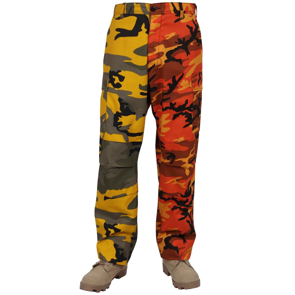 Exclusive Two-Tone BDU Pants combine two great camouflage patterns into one pant, with each leg of the pant in a different camo color! The cargo style, military fatigue pant offer all the same great features of our original BDU pant including a button fly, two front slash pockets, two button-down back pockets and two large button-down pleated bellow leg pockets. In addition, these two-tone camo pants were built for combat and are made of a durable, yet comfortable cotton/poly blend material with reinforced seat and knees and double stitched seams. The camo pants sizing is also easy to adjust with drawstring ankle ties and an adjustable waist tab, the inseam of the pants is approximately 29 1/2"-32 1/2". Two-Tone Camo Pants are perfect for anyone who can't decide what color of camouflage pants to wear.