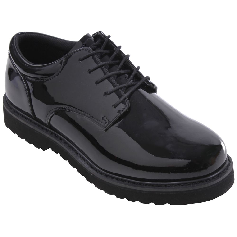 Uniform Oxford Work Sole feature a mirror finish with easy care Poromeric uppers, oil resistant EVA sole, steel shank, Goodyear welt construction, lightweight, removable cushion insole, Available in Sizes: 5 to 13 regular (including ½ sizes), 7 to 13 wide widths
