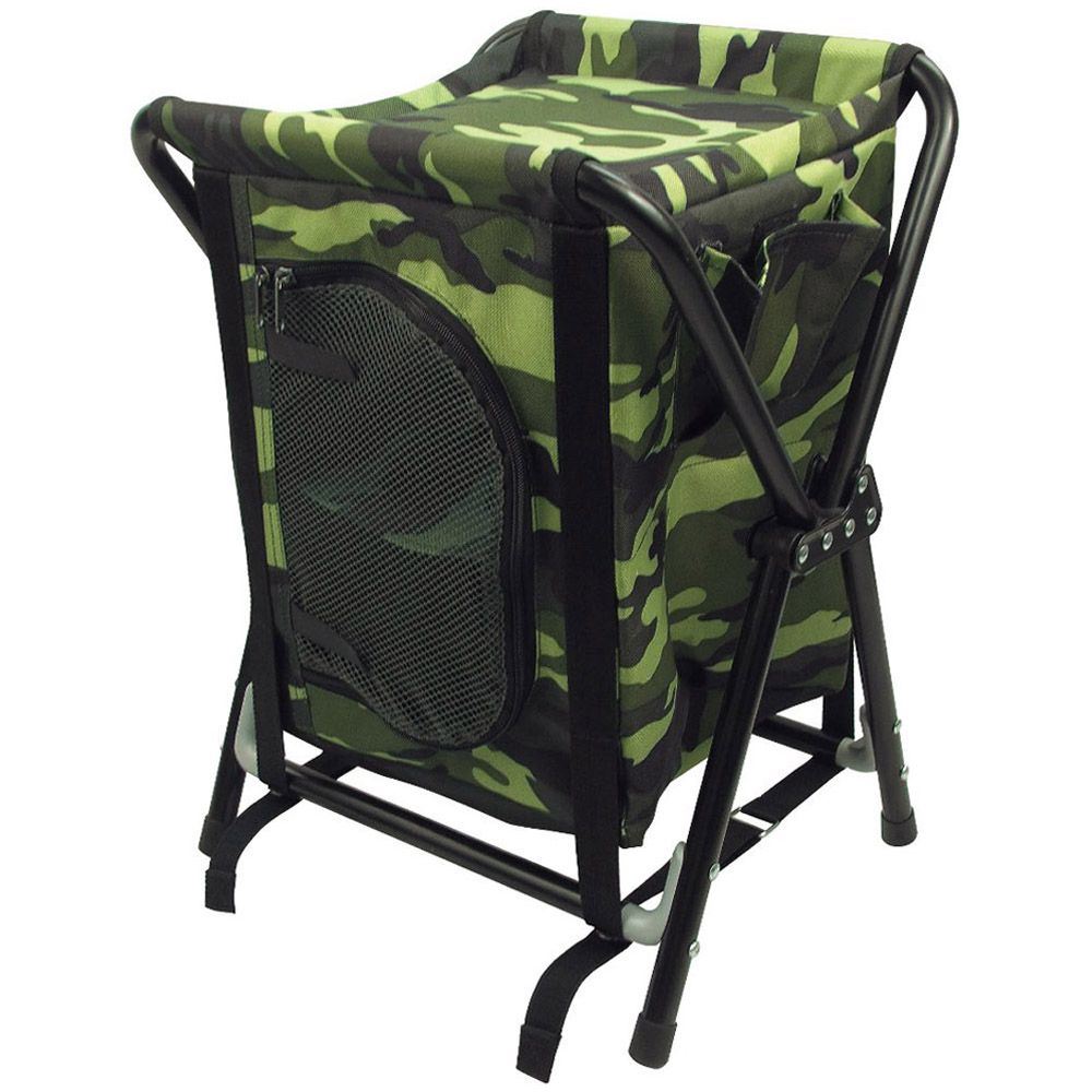 Camouflage Deluxe Storage Stool is made up of heavy weight 600 denier polyester/PVC. Large mesh zippered storage compartment. 2 side pockets w/hook and loop closure. Woodland Camouflage. Weight limit 100 kgs / 220 lbs (pounds). Folds to be carried easy on backpack. Great for hunting. Woodland Camouflage.