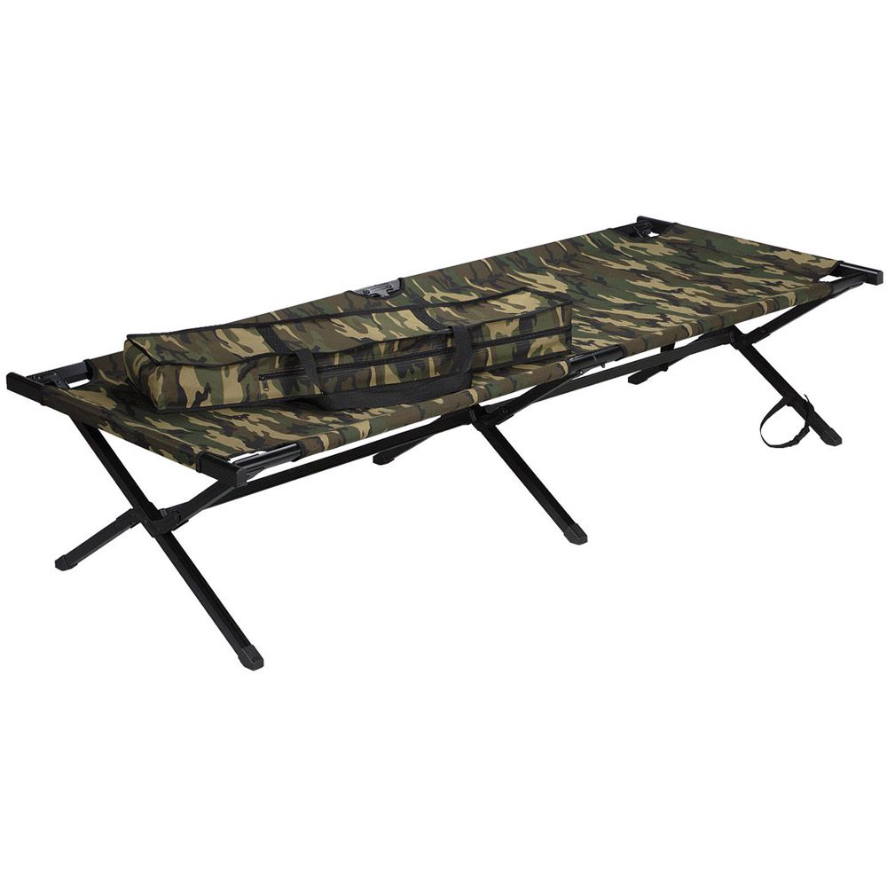 Heavy duty aluminum frame composite. 600 denier polyester PVC material. 330 pound tested. Easy to carry polyester carrying case included. Great camping cot. GI Government Issued type. Extra wide size provides more comfortable sleeping experience.
