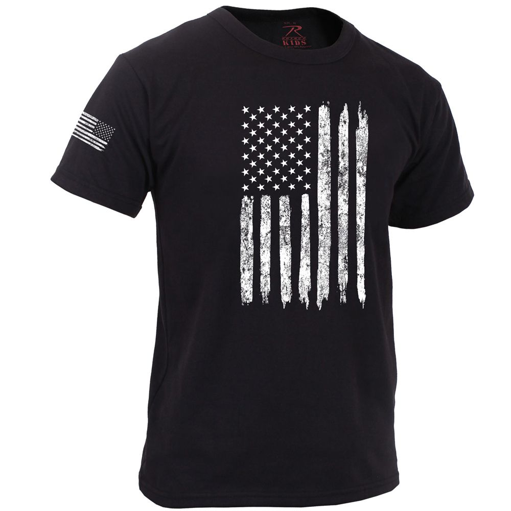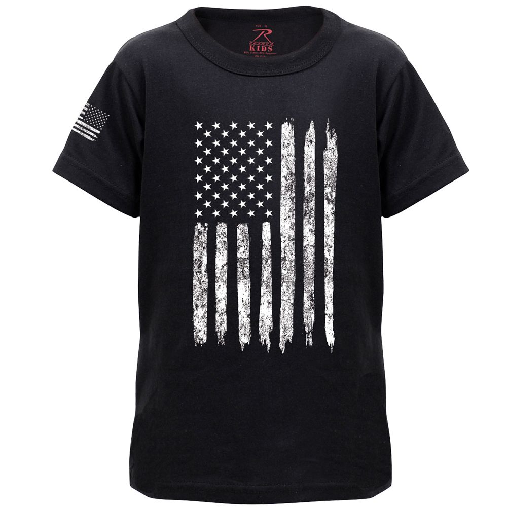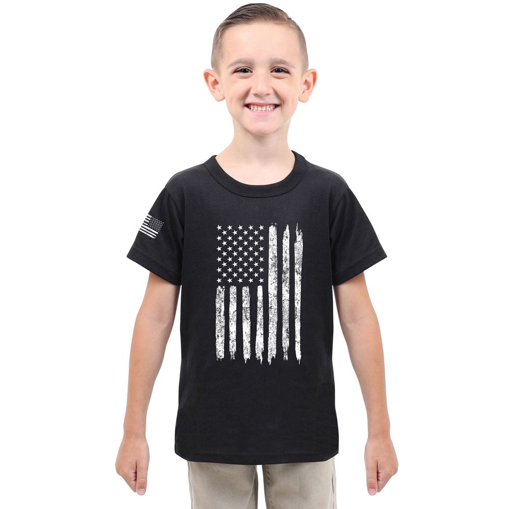 - Distressed US Flag Graphic on the front- Smaller US Flag print on the right sleeve- Soft Cotton/Polyester Kids T-Shirt- Great for school, sports or any occasion