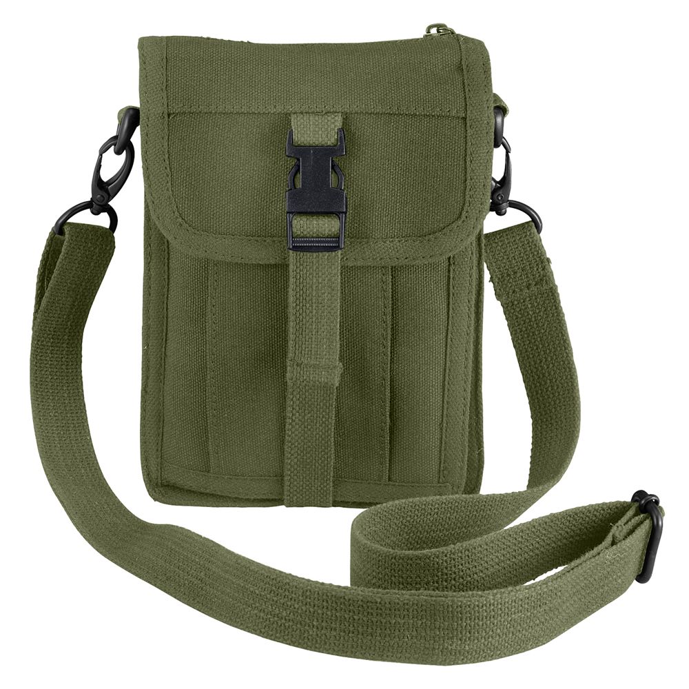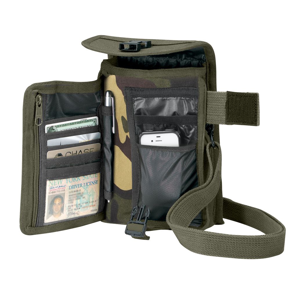 The Two-Tone Canvas Shoulder Duffle Bag features a zipper end pocket, detachable & adjustable shoulder strap, and twin carry-on handles. Perfect as a travel Rothco’s Canvas Travel Portfolio Bag is the perfect bag to keep your personal belongings safe and organized on your next adventure with over a dozen pockets and specially designed compartments. The Travel bag features one large main compartment, hidden map/document pouch, 7 credit card slots, 1 ID holder and pen holder. In addition, there are two exterior pockets on the flap and two side pockets. The detachable and adjustable shoulder strap extends to the length of 56 inches and can be worn on the shoulder or across the body. The compact travel bag measures 8 1/2" X 6 1/4" X 2" and is made of a heavyweight cotton canvas with a nylon lined interior.