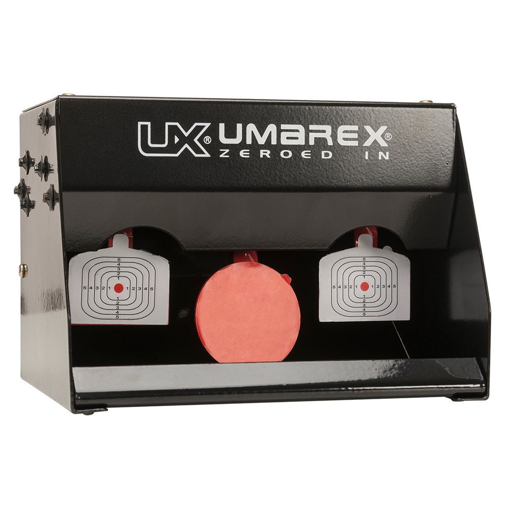 Make your target practice more efficient with the Umarex Pellet Trap Reset Target System. This automatically resetting target features two metal target paddles. To reset them, simply hit the middle red paddle.