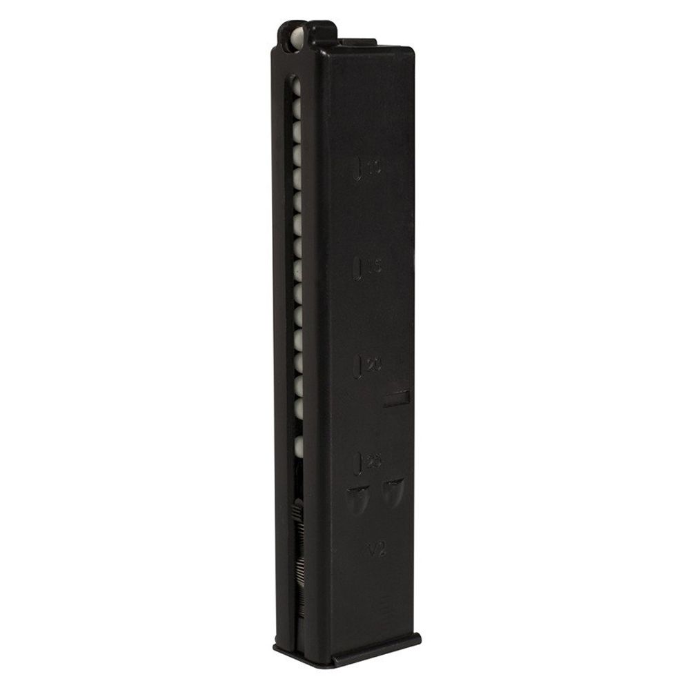 Increase your ammo supply with this spare/replacement magazine for the Umarex UZI Carbine. Constructed from the same durable metal as the rifle with a perfect match black finish. The metal frame can hold up to 38 BBs and 1 12g CO2 cartridge.