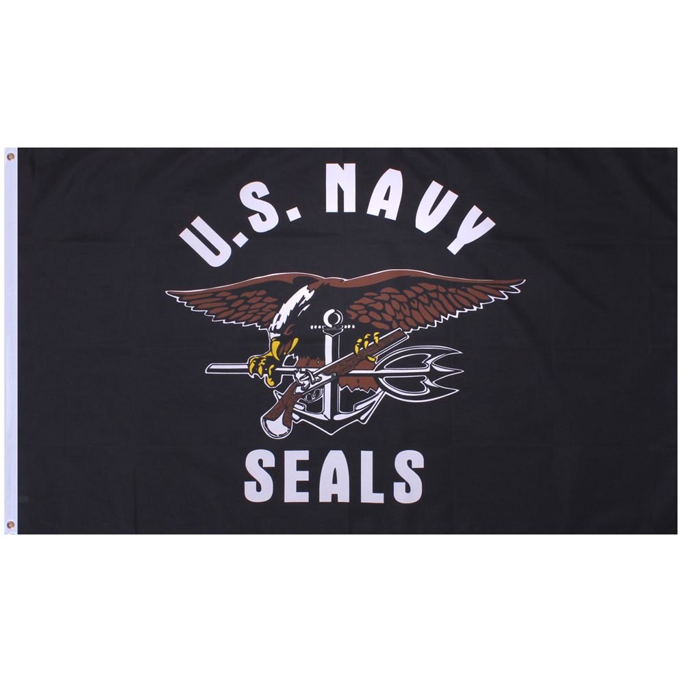 Display your pride for one of the most elite military units in the world with the United States Navy Seals Flag. Made from durable polyester, this 3' x 5' flag is perfect for both indoor and outdoor use. It features a deep black background, a bold Navy SEALS emblem with anchor, and a crisp white vertical border for mounting. Fly it on any standard flagpole to honor the strength, courage, and commitment of the Navy SEALS.