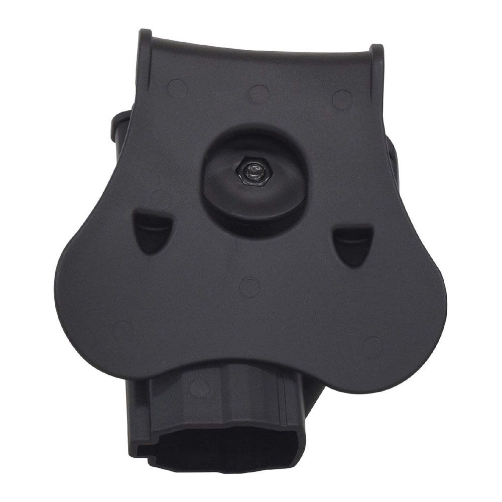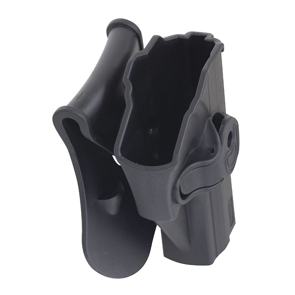 Amomax holster is compatible with 4 different carrying platforms –paddle (standard), belt clip, MOLLE, and drop leg platform. All the carrying platforms can be replaced by only one screw. User can carry them in daily use, outdoor sports, normal shooting training and competition. Holster will stay firmly on belt, leg and MOLLE system even in fast move.Holster body and carrying platform are connected with a tooth gear. The holster body is 360 degrees rotation. User can easily adjust the carrying position.