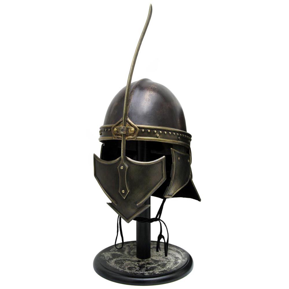 Enter the elite ranks of the Unsullied army with the Game of Thrones Helm. This piece of armour has been recreated from the original prop used on the hit HBO TV series. Made of leather and steel, this wearable helmet has a fully adjustable visor. Certificate of authenticity included.