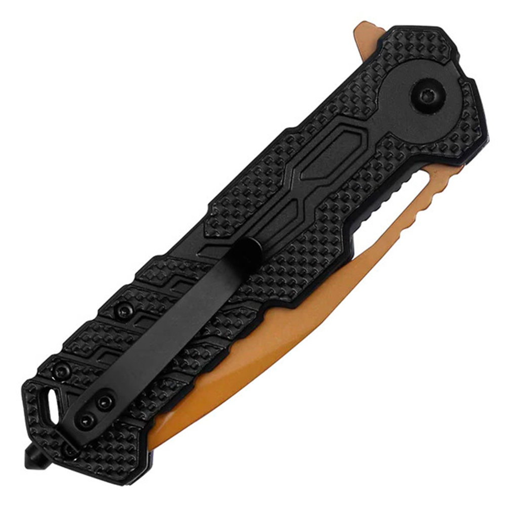 This Wartech Tactical folding knife features a sleek titanium-coated blade, designed for durability and precision. It strikes a perfect balance between portability and functionality, making it an ideal choice for everyday carry and outdoor adventures.