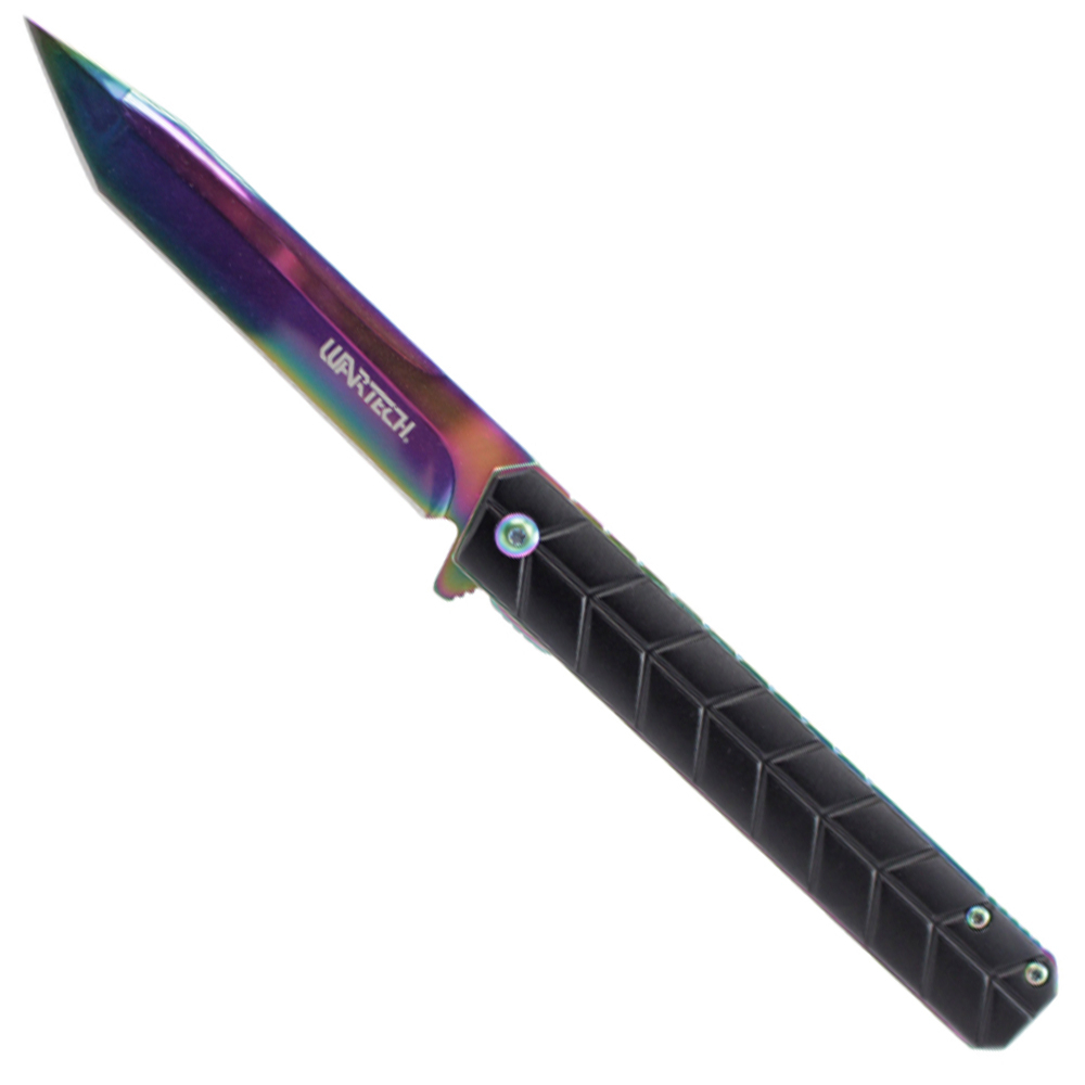 Introducing a reliable and practical folding knife designed for everyday carry. This knife features a spring-assisted flipper for quick and effortless deployment. The frame lock mechanism ensures secure blade locking during use. The 4" inch stainless steel blade, with a thickness of 3mm, provides durability and versatility for various cutting tasks. The 5" inch closed handle is equipped with jimping for a comfortable and secure grip. With an overall length of 9" inches, this knife offers optimal size for both utility and portability. The blue finish plain edge tanto blade adds a touch of style to its design. Weighing in at 4.3 ounces, it is lightweight and easy to carry. The black stainless steel handle scales provide durability and a sleek appearance. For added convenience, this knife includes a tip-up deep carry pocket clip, allowing for secure and discreet carrying.