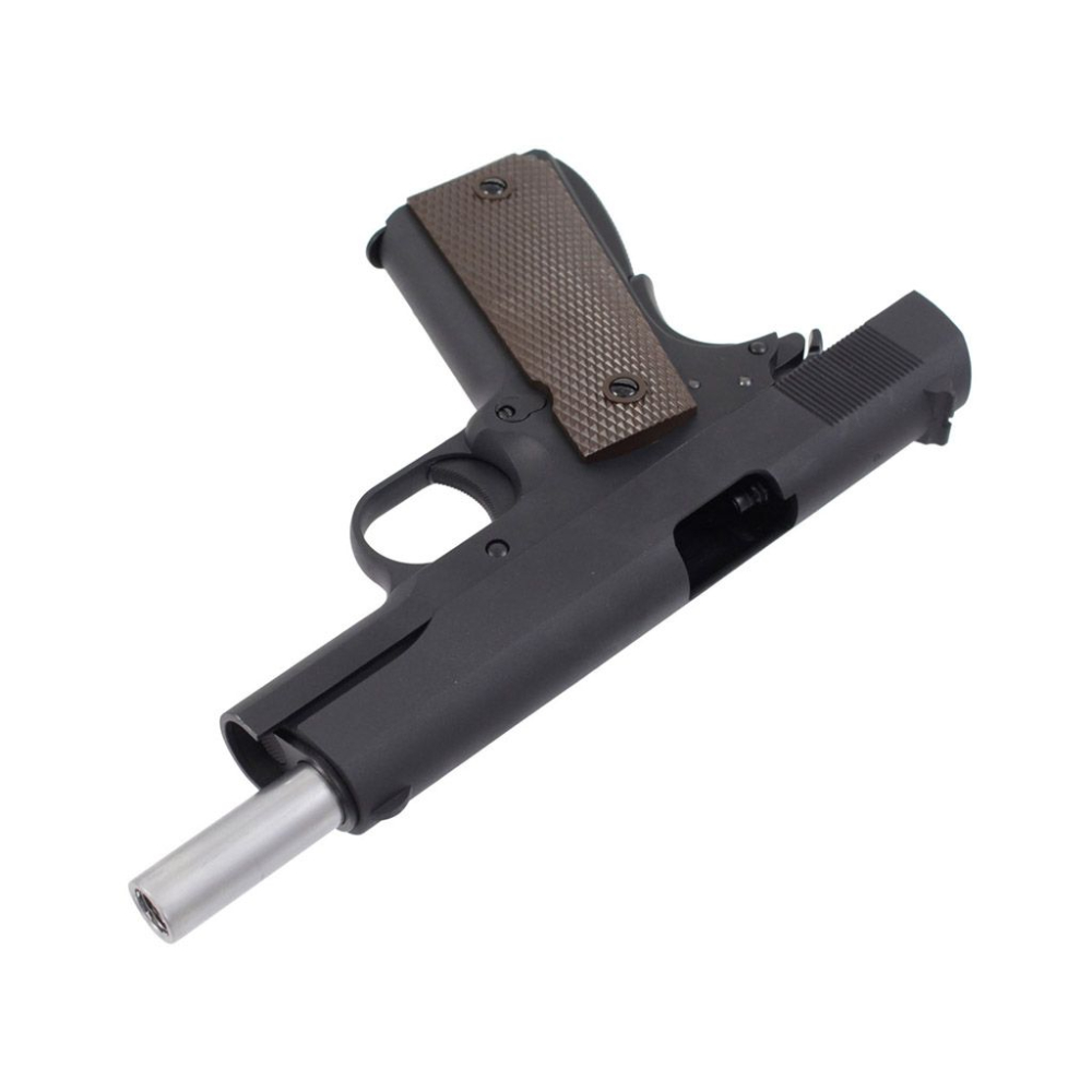 The body being metal is fantastic and looks incredibly realistic, due to the metal the weapon itself has a very weighty feel with a very nice, crisp blowback action.This pistol is incredibly accurate, and it could easily hit a man-sized target at 50 Metres with absolutely no problems at all, the shot grouping is very good and the general consistency of firepower is also very good for the price and size of the pistol.