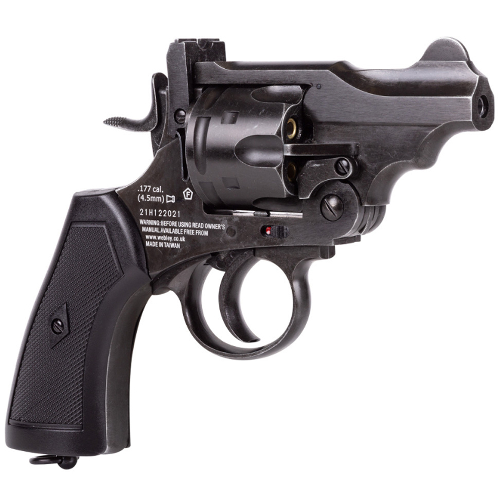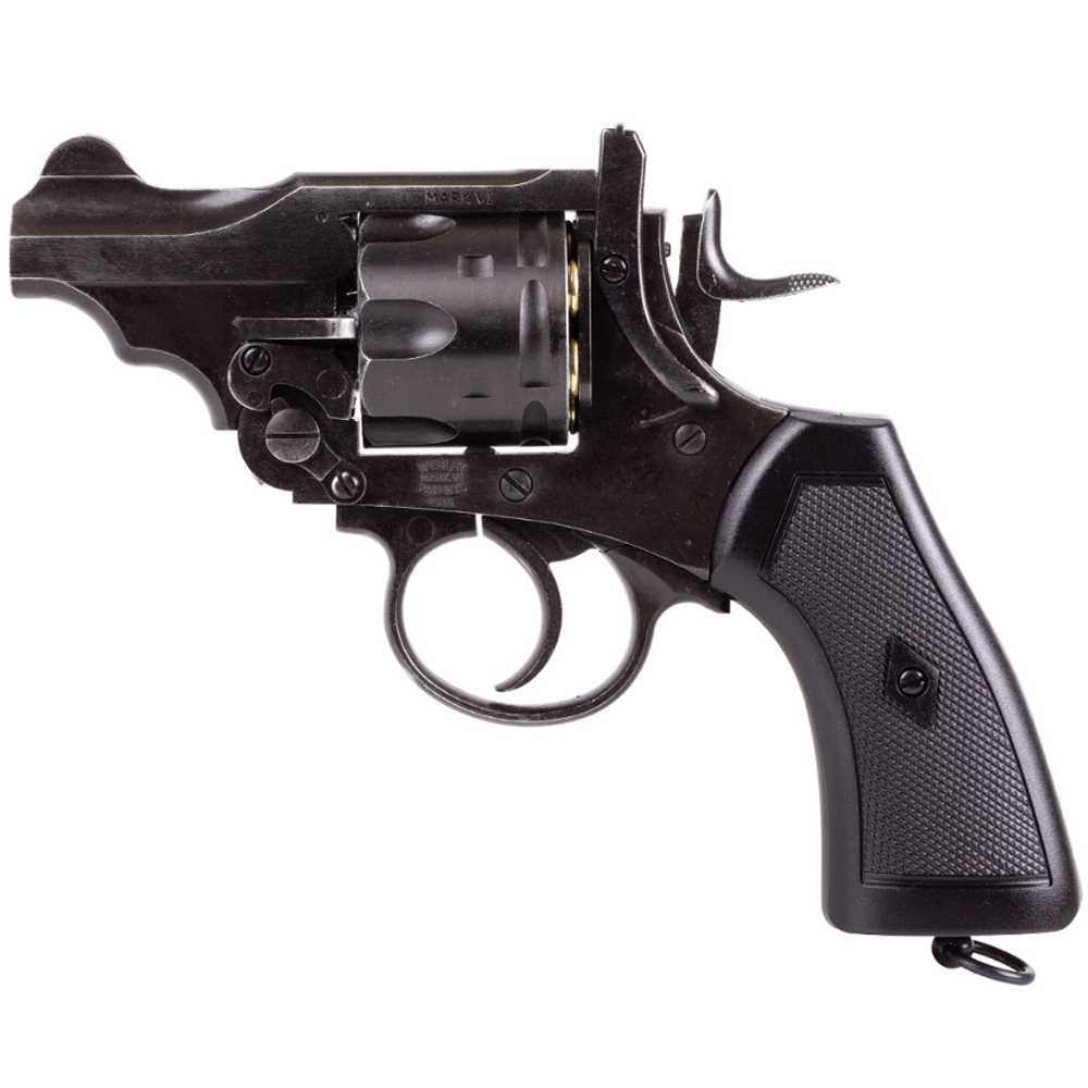 The Mark VI air pistol helps to enjoy the smooth action and lifelike feel, due to its basis on original Webley blueprints. It loads, cycles, fires, and ejects just like its real-life counterpart, and can even be field-stripped. This VI variation of this classic pistol features a battlefield distressed finish to give your pistol a well-worn look. Take home the Mark VI air pistol and own a replica of one of the greatest battle revolvers in history!