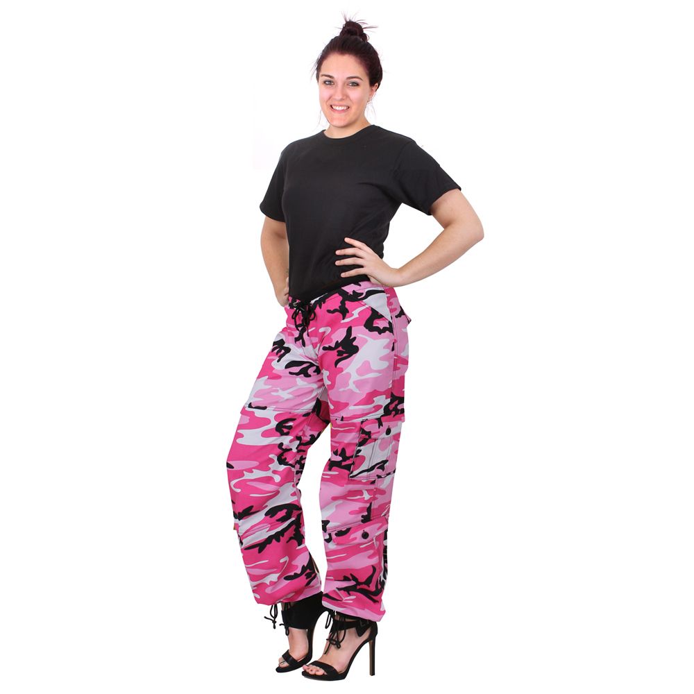 Womens Paratrooper Colored Camo Fatigue Pants are made with a comfortable and durable 55% cotton/45% polyester blend. The camo pants feature 8 versatile pockets including 2 side cargo pockets for an authentic military look. For the perfect fit, the camouflage pants are equipped with a low drawstring waist and ankle drawstrings. In addition, color camo pants feature a zipper fly with button flap closure.
