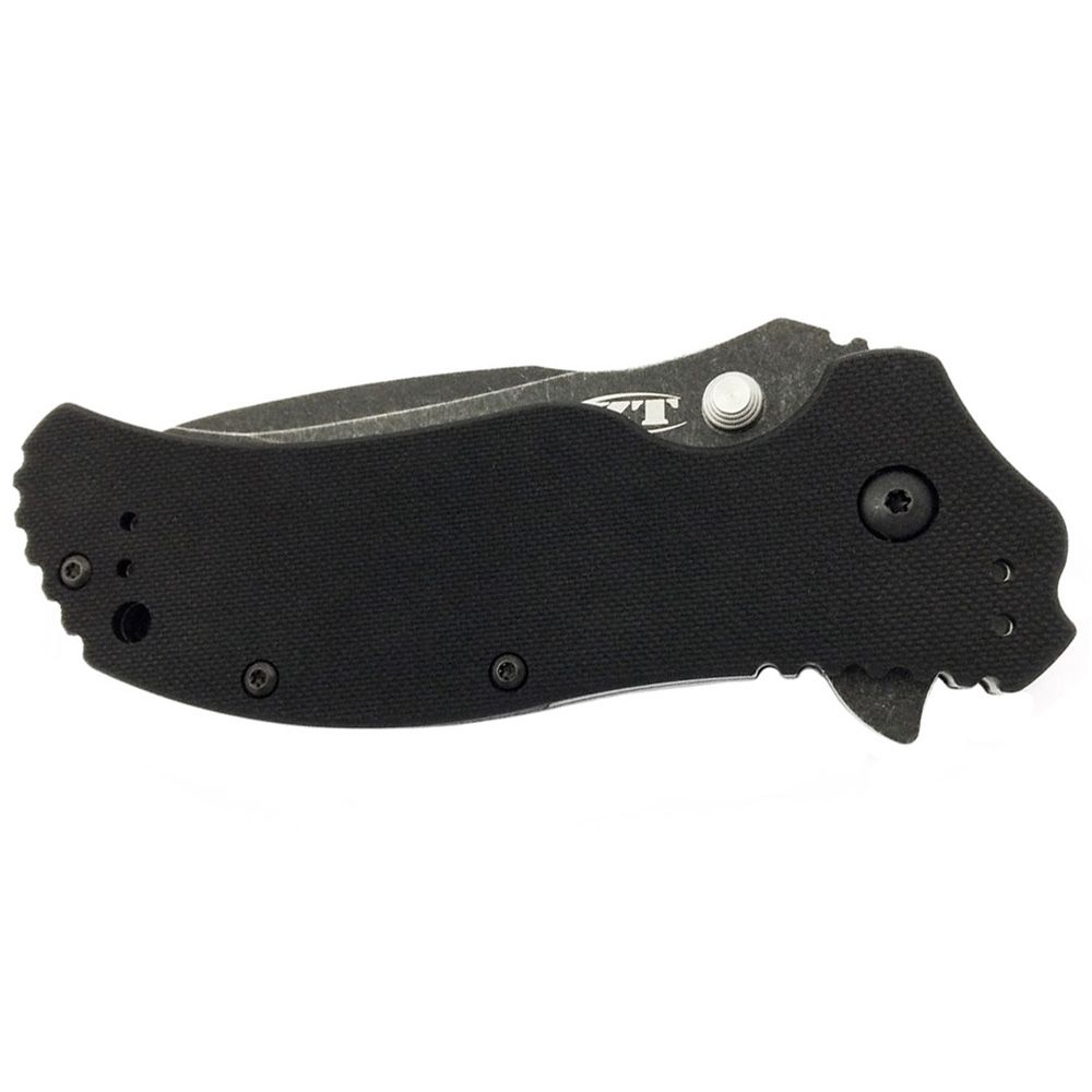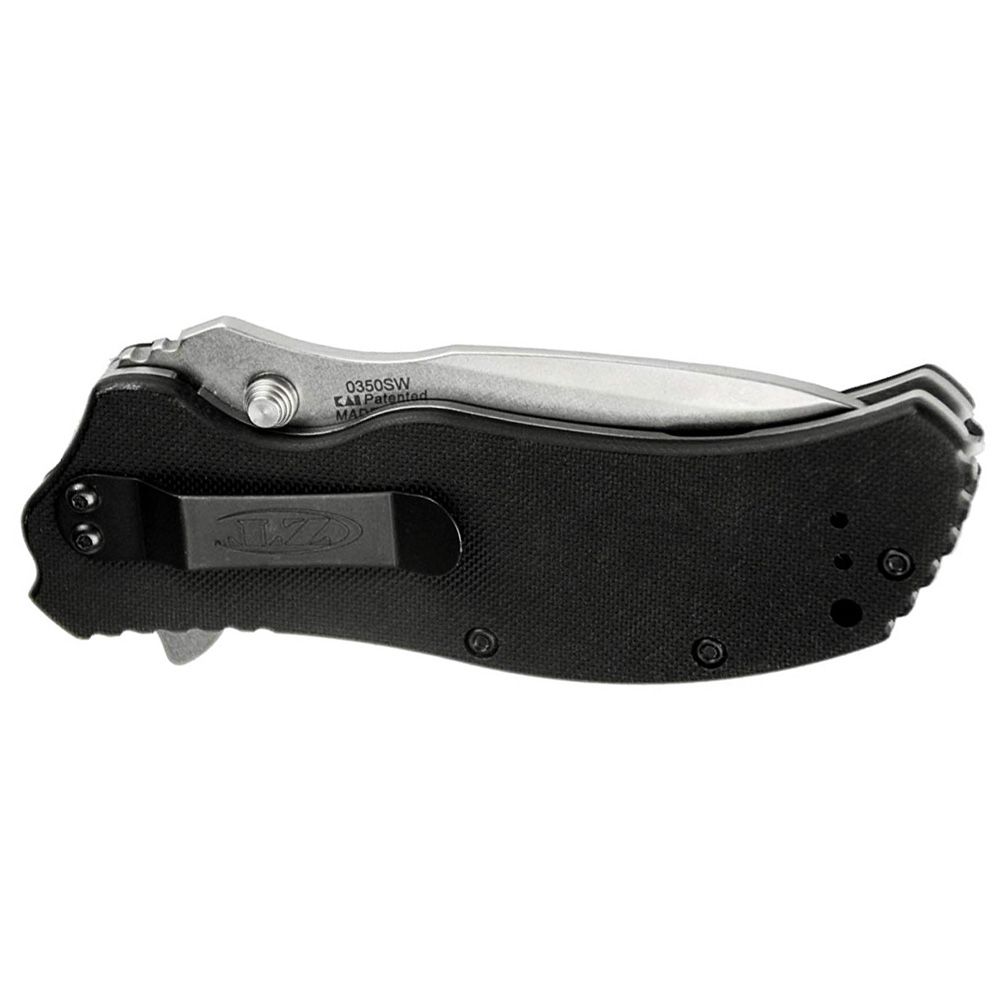 Like its larger counterpart, the 0350 features the patented SpeedSafe assisted opening system. Deploy the blade quickly and easily, even in gloves, using the ambidextrous flipper. The ZT 0350’s blade is CPM S30V stainless steel with non-reflective black Tungsten DLC (Diamond-Like Carbon) coating. S30V steel is extremely durable, corrosion resistant, and wear resistant. In addition to providing a non-reflective surface, the black Tungsten DLC coating offers additional blade hardness and reduces friction.