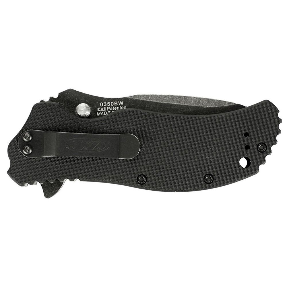 This high-performance S30V blade is paired with textured black G10 scales for a secure grip and excellent mechanical strength even under the roughest conditions. The scales are flat rather than 3D-machined like those of the 0300. A locking liner secures the blade during use. The 0350 also includes ZT’s Quad-mount system for complete versatility. Mount the pocketclip in any of four ways: tip-up, tip-down, on the left side, or the right. There’s a pre-drilled lanyard hole for users who prefer to attach a lanyard.