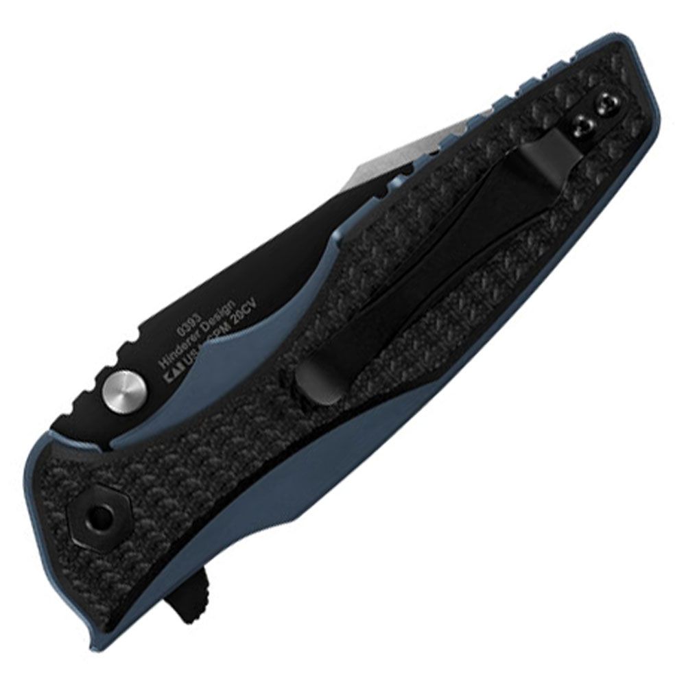 The 0393's handle is built of titanium, anodized in a handsome blue. A G10 overlay, machined with a Rick Hinderer custom texture, not only enhances grip, but also adds to the knife's outstanding look.