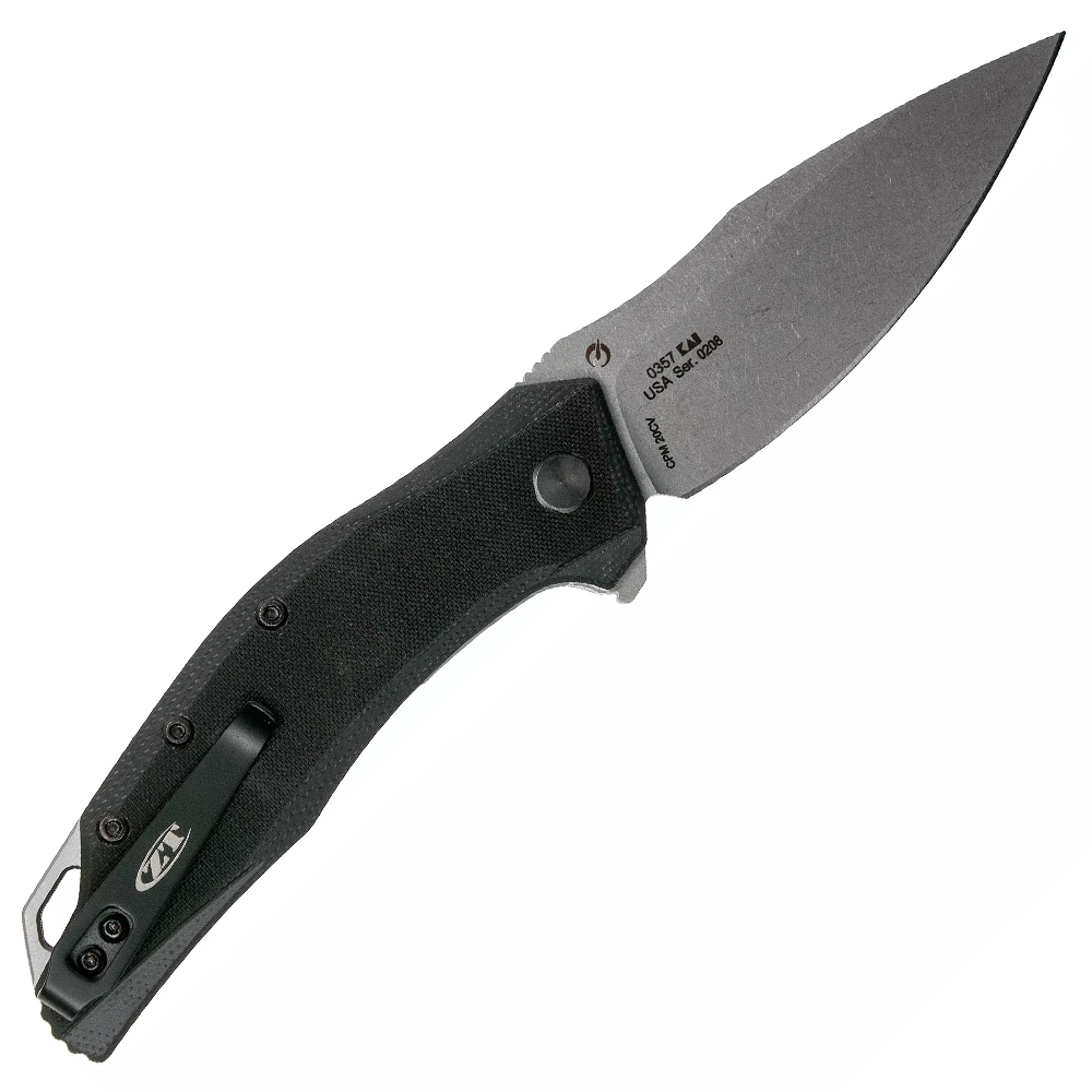 Being jam-packed with incredible features, the 0357 ZT folder is the total package for any collection or daily cutting task. It not only takes full advantage of the CPM-20CV remarkable toughness but also adds to it a robust G10 handle for an incredible hardness and wear resistance. The knife opens up smoothly using the SpeedSafe assisted opening system and its flipper. It also features a pocket clip for a very convenient and ambidextrous carry.